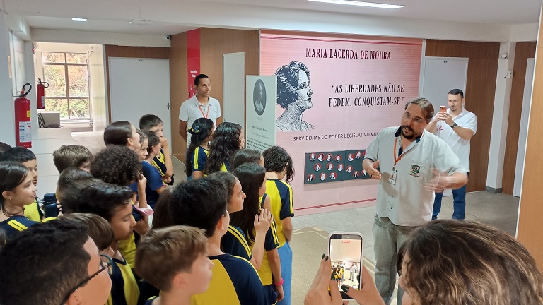Estudantes do 5º ano da Escola Faculdade do Saber participaram do Projeto Cidadania, da Escola do Legislativo da Câmara M. de Manhuaçu, na tarde desta terça-feira, 24/03. Nesta acolhida, os alunos visitaram as instalações da Casa Legislativa e aprenderam mais sobre o importante papel desempenhado pelos vereadores visando o desenvolvimento social e o bem-estar da população.